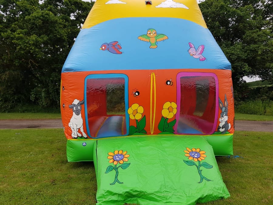 Bounce around in our enclosed bouncy castle with windows to see the amazing views from the inside,Not only can you bounce around with friends this also comes with brightly coloured biff bash pillows inside.