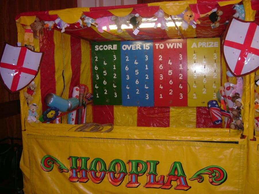 Hotdog Stall Popcorn+Candy Floss on Tables Football Shoot Out Fimble+Friends Bouncer Circus Activity Run